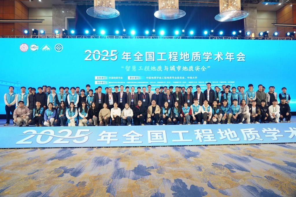 本次会议以“智慧工程地质与城市地质安全”为主题,围绕地质体智能感知与多源数据融合技术、工程地质智能建模与反演、岩土体工程地质特性与智能分析等九个议题展开深入研讨。在学术交流环节,本次大会共安排学术报告约 570 个,其中大会特邀报告22个,分会场特邀报告 64 个,分会场一般报告 205 个,研究生论坛报告 279 个,为与会者带来了一场学术盛宴。经过激烈角逐与严格评审,年会评选出30位优秀研究生报告奖。中国地质学会工程地质专业委员会副主任委员葛永刚研究员主持闭幕式,彭建兵院士与同济大学石振明副校长共同为获奖者颁奖并合影留念。祁生文秘书长对2025年全国工程地质学术年会进行学术总结并宣布闭幕。2026年全国工程地质学术年会将由工程地质专业委员会和吉林大学共同承办。