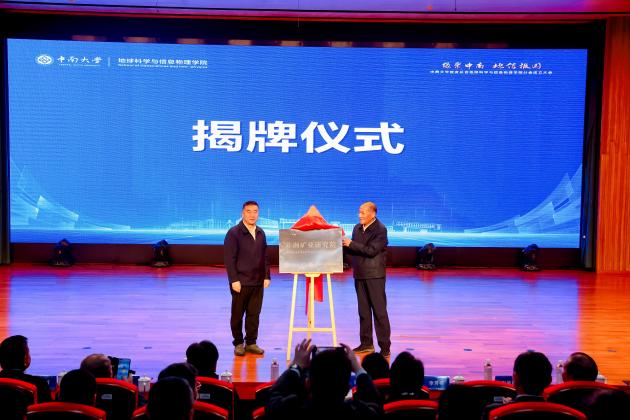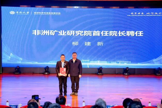 会上,校党委副书记李景升与湖南继善高科技有限公司董事长李芳书共同为“中非矿业研究院”揭牌,并为研究院首任院长柳建新教授颁发聘书。
