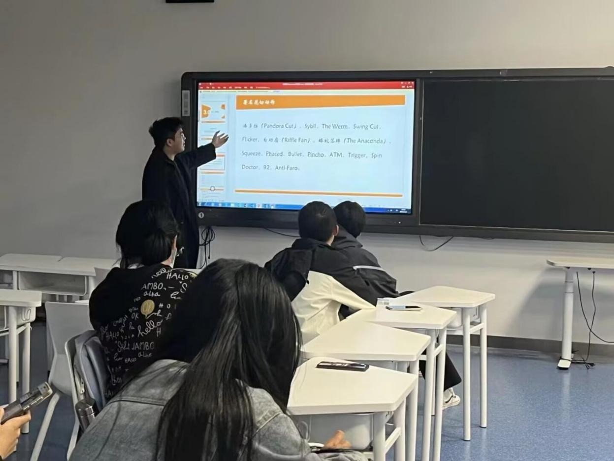 活动伊始,魔术社社长以通俗易懂的语言,系统讲解了魔术基础概念与核心手法。他结合实例拆解关键细节,帮助社员建立扎实的理论基础。随后,魔术社干事轮番登场,带来近景魔术、纸牌魔术等精彩展示。纸牌变幻等奇妙场景接连呈现,现场掌声与惊叹声不断,迅速点燃了大家的热情。