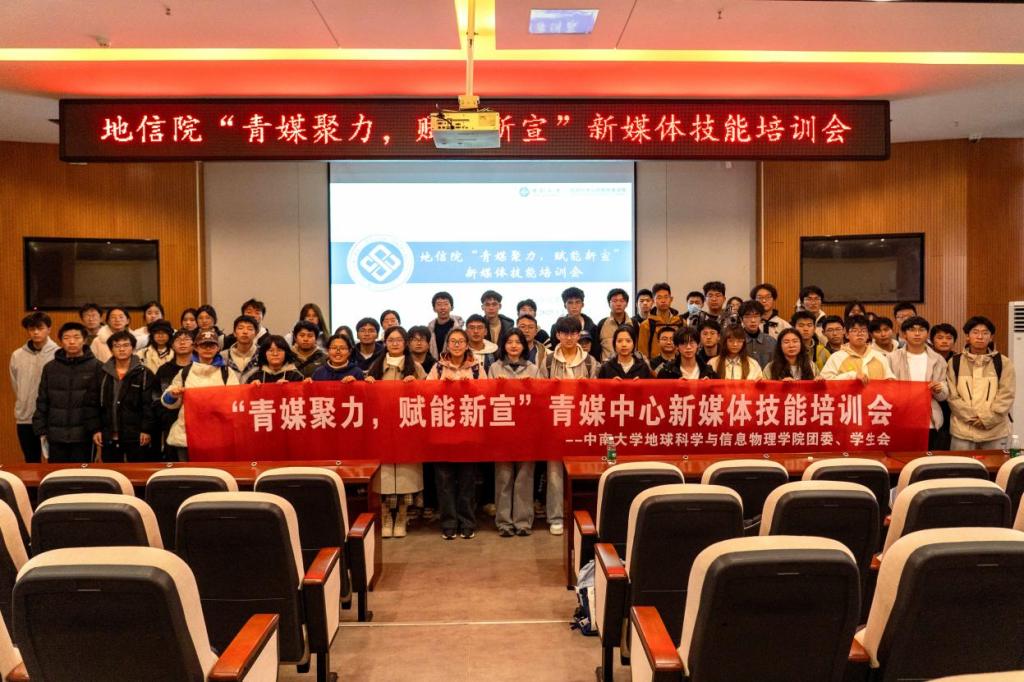 为加强成员的基础工作能力,确保学院团委学生会后续工作顺利开展,2025年12月10日下午,地信院“青媒聚力,赋能新宣”新媒体技能培训会于潇湘校区地科楼127室顺利召开。本次培训会由院团委青媒中心编辑部主办,邀请了六位主讲人从拍摄技巧、排版设计、新闻写作等方面进行技能培训。地信院团委学生会全体成员以及24、25级各团支部组宣委员共120余人参会,院团委书记刘琦老师莅临指导,会议由张睫米同学主持。