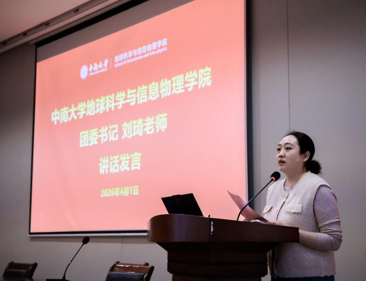 2026年4月1日下午,地信院团委、学生会2025-2026学年学期述职答辩在地科楼127顺利举行。会议由何依诺同学主持。院团委书记刘琦老师出席答辩会,院团委、学生会汇报代表以及各团支部学生代表共计154人参会。
